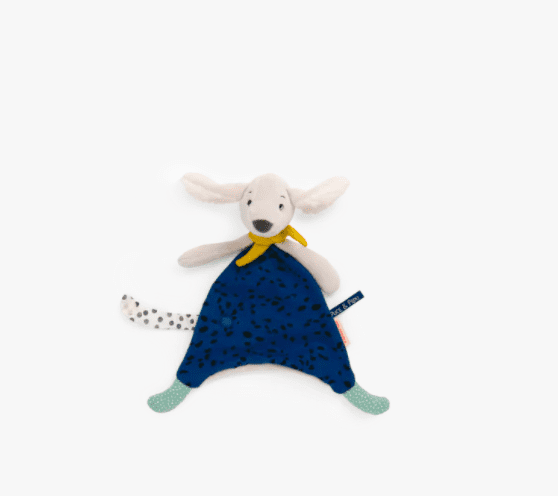 Doudou chien plat avec attache-tétine. Avec ses grandes oreilles toutes douces et ses grands bras, il est facile à saisir par les petites mains. Il deviendra vite un indispensable pour accompagner bébé dans toutes ses aventures et ses moments de tendresse.